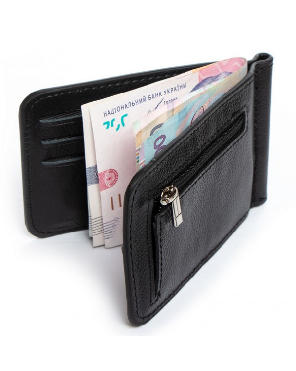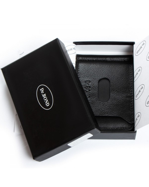 Чоловічий шкіряний затискач для банкнот Dr. Bond MZS-5. Закривається на магніт. Всередині затискач для банкнот та 4 кишені для карток. Ззовні на фасаді є відкрита плоска кишеня, на звороті монетниця на блискавц.і Розмір (см) 11,5*8,0. Матеріал - натуральна шкіра. Поставляється у фірмовій коробці.