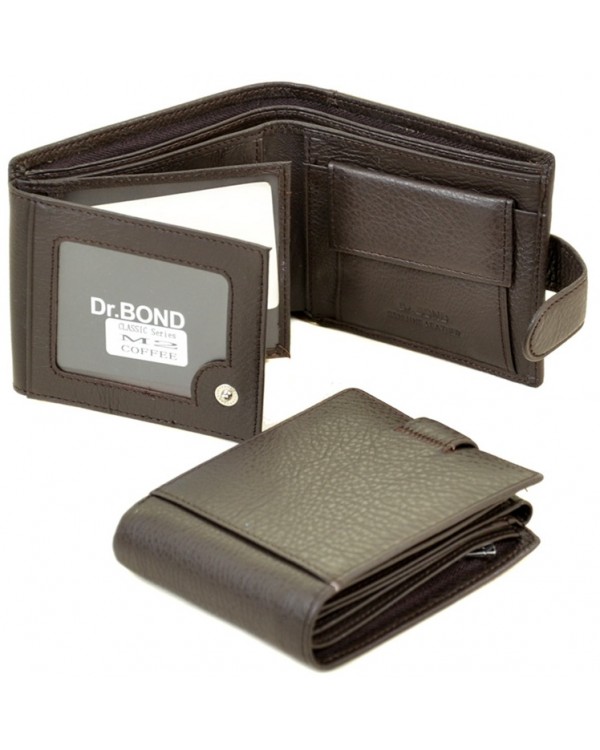Чоловічий шкіряний гаманець Dr. Bond. Портмоне з 3 відділеннями під банкноти (одне з них на блискавці), усередині – відділення для дрібниці, 2 відкидні блоки на клапані з прозорими кишенями під документи та карти, 2 великі кишені. Закривається на клапан. Розмір(см) 11,5*9,5. Поставляється у коробці.