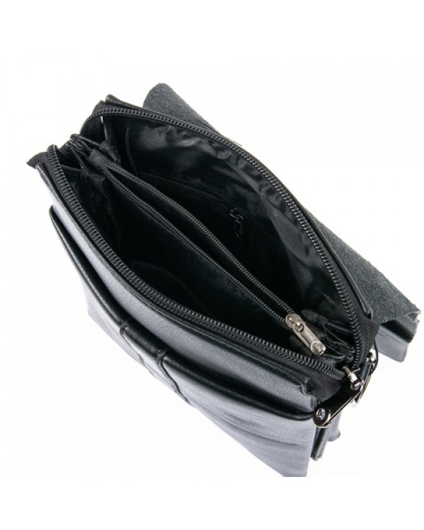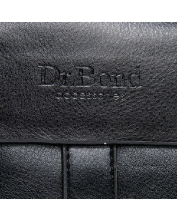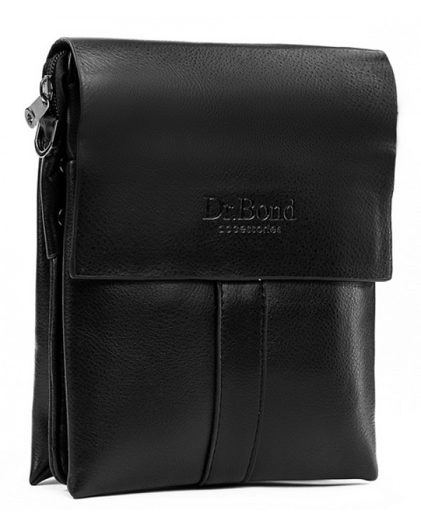 Чоловіча сумка Dr.Bond 202-1 Black. Клапан із натуральної шкіри. Під клапаном додатково закривається на блискавку. Подвійне відділення, розділене кишенею-перегородкою на блискавці, бічна кишеня на блискавці та відкрита кишеня. На фасаді є відкрита кишеня і на звороті кишеня на блискавці. Регульований плечовий ремінь та знімна ручка. Розмір (см.) 16*20