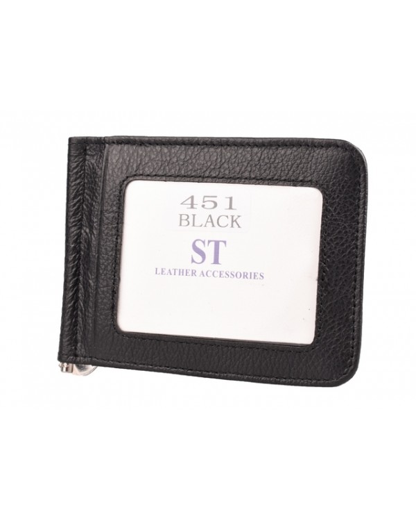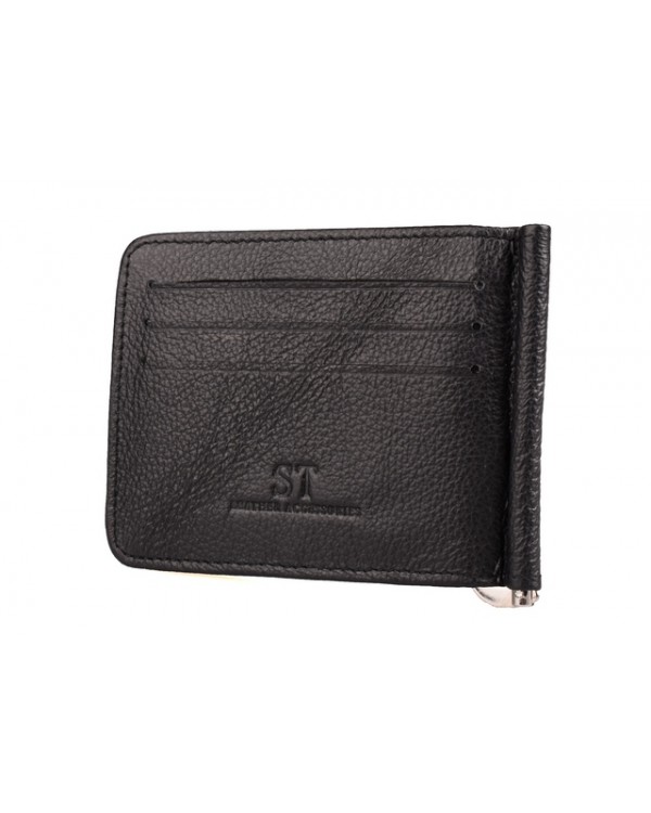 Мужской кожаный зажим ST 451 black. Есть 5 дополнительных карманов для визитных карт (один из них прозрачный). Закрывается на магните. Размер (см.) 11,2*8,4. Поставляется в фирменной коробке.