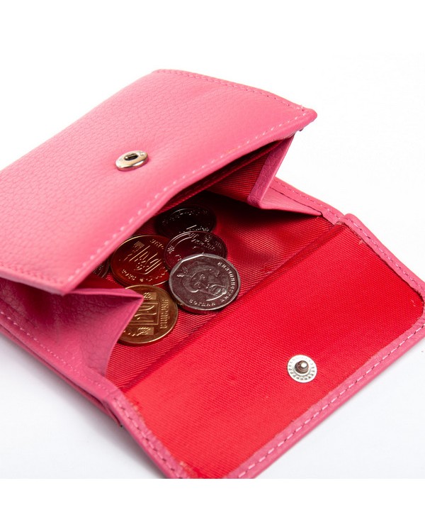 Всередині знаходяться 2 відкритих відділення для банкнот, розділені шкіряною перегородкою і одне відділення на блискавці, 5 кишень для візитних карток. Зовні гаманця на фасаді розташована кишеня-монетниця під клапаном на кнопці. Розмір (см.) 10,5*10*2,5. Поставляється у коробці.
