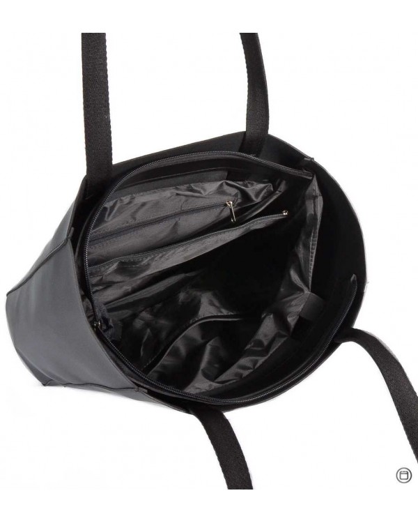 Жіноча сумка 518 black. Всередині два відділення розділені кишенею перегородкою на блискавці, потайна кишеня на блискавці та подвійна відкрита кишеня. На звороті кишеня на блискавці. Розмір (в см.): 33*32*11см., Висота ручок 26см. Матеріал ― екошкіра відмінної якості.