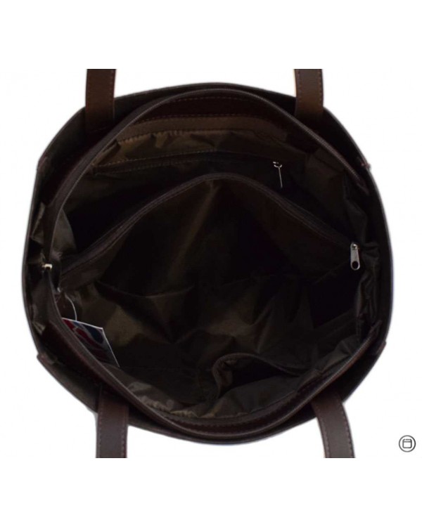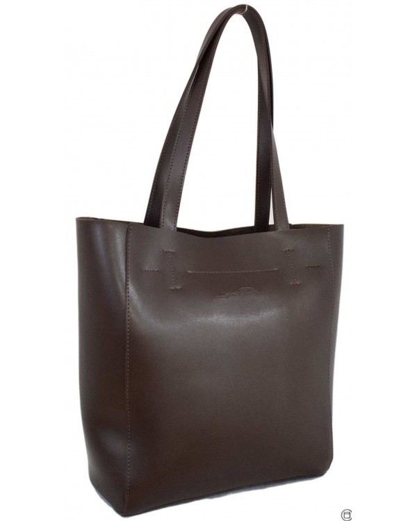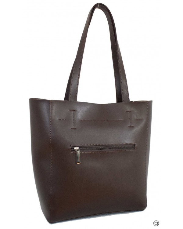 Жіноча сумка 518 коричнева. Всередині два відділення розділені кишенею перегородкою на блискавці, потайна кишеня на блискавці та подвійна відкрита кишеня. На звороті кишеня на блискавці. Розмір (в см.): 33*32*11см., Висота ручок 26см. Матеріал ― екошкіра відмінної якості.