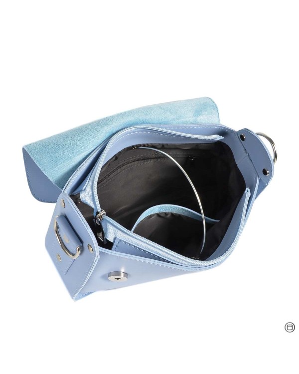 Жіноча сумка 696 блакитна. Закривається на блискавку. Всередині одне велике відділення, потайна кишеня на блискавці, на звороті сумки кишеня на блискавці. У комплекті довгий регульований ремінь. Розмір (см.) 15*23*7см.