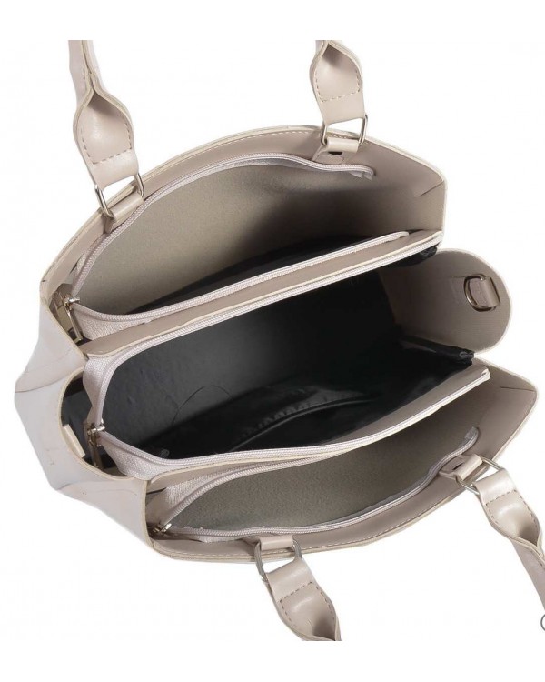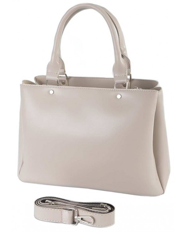 Жіноча сумка 717 беж. Три окремі відділення на блискавках. Середнє відділення частково з підкладою, в ньому є потайна кишеня на блискавці та відкрита бічна кишеня. Бічні відділення без підкладки. У комплекті довгий регульований ремінь. Розмір (в см.): 23*31*11см., Висота ручок 19см. Матеріал ― екошкіра