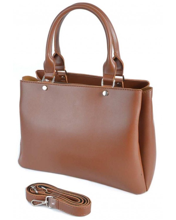 Жіноча сумка 717 Brown. Три окремі відділення на блискавках. Середнє відділення частково з підкладою, в ньому є потайна кишеня на блискавці та відкрита бічна кишеня. Бічні відділення без підкладки. У комплекті довгий регульований ремінь. Розмір (в см.): 23*31*11см., Висота ручок 19см. Матеріал ― екошкіра