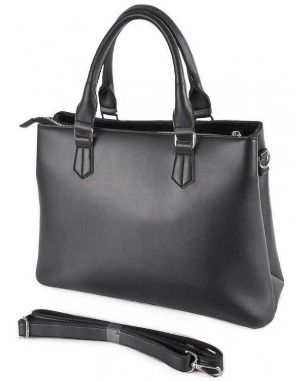 Жіноча сумка 723 black. Два окремі відділення на блискавках. В одному з них є бічна кишеня на блискавці в іншому - відкрита кишеня. У комплекті довгий регульований ремінь. Розмір (в см.): 25*34*11см., Висота ручок 16см. Матеріал ― екошкіра відмінної якості!