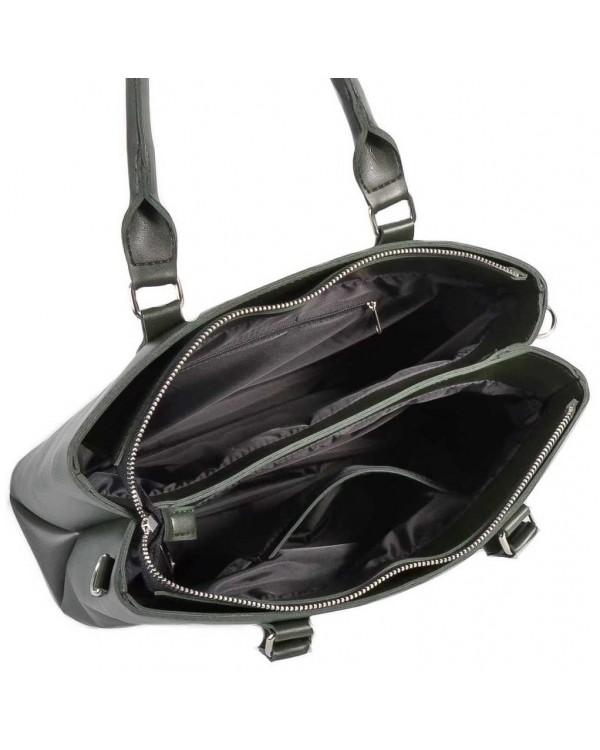 Жіноча сумка 723 Green. Два окремі відділення на блискавках. В одному з них є бічна кишеня на блискавці в іншому - відкрита кишеня. У комплекті довгий регульований ремінь. Розмір (в см.): 25*34*11см., Висота ручок 16см. Матеріал ― екошкіра відмінної якості!