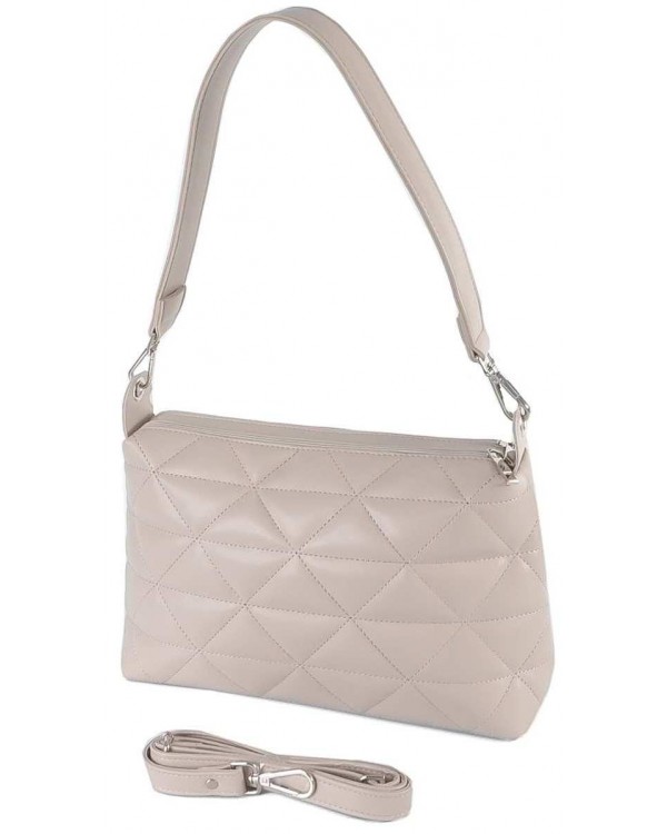 Жіноча сумка 772 бежева. Два відділи на блискавках, всередині відкрита кишеня і кишеня на блискавці. На зворотному боці сумки відділ на блискавці. У комплекті ремінь, який регулюється і коротка ручка. Розмір (см.) 29*19*10. Матеріал - екошкіра