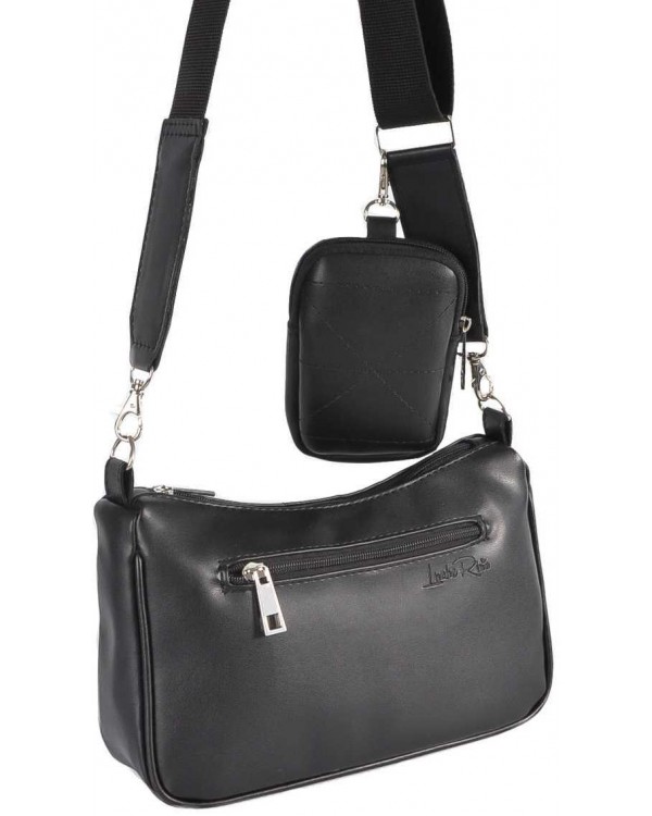 Жіноча сумка 736 Black. Закривається на блискавку. Усередині одне велике відділення, бічна кишеня на блискавці і велика відкрита кишеня. На звороті кишеня на блискавці. У комплекті довгий регульований широкий ремінь. Розмір (см.) 16*29*7см.