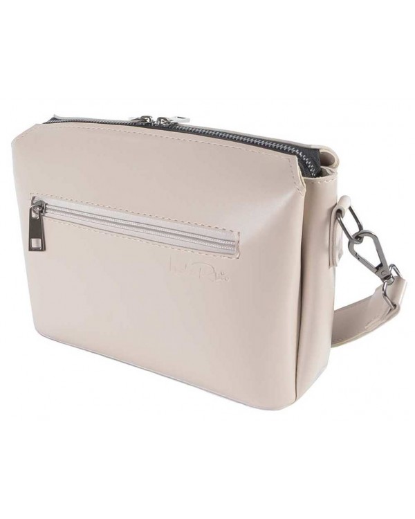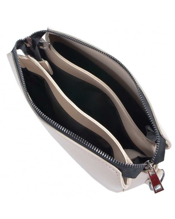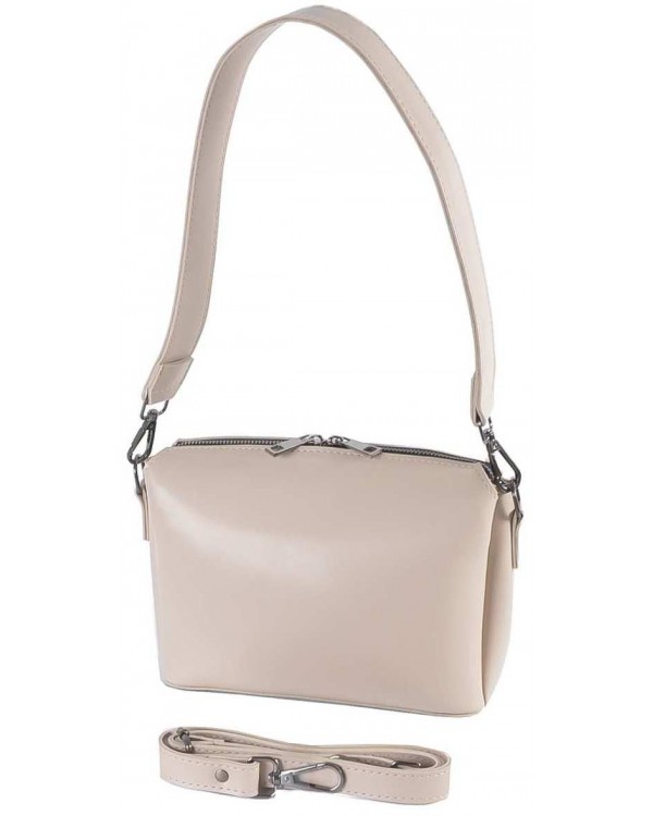 Жіноча сумка 813 бежева. Зачиняється на блискавку. Всередині три окремі відділення з додатковими кишенями. На зворотній стороні кишеня на блискавці. У комплекті довгий ремінь що регулюється та коротка ручка. Розмір (см.) 12*17*9см.
