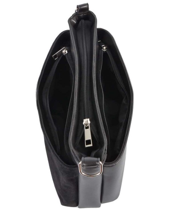 Жіноча сумка 754. Фасад за натурального замшу. Три окремі відділення на блискавках. Всередині центрального відділення потайна кишеня на блискавці і відкрита кишеня. У комплекті довгий регульований ремінь. Розмір (см.) 19*29*10см.