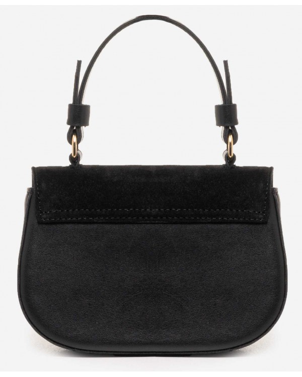 Жіноча замшева сумка 854 чорна. Клапан з натурального замшу. Зачиняється на блискавку. Всередині одне велике відділення, бічна кишеня на блискавці і відкрита кишеня. Під клапаном на фасаді відкрита кишеня. В комплекті довгий ремінь що регулюється. Розмір (см.) 12*19*5см.