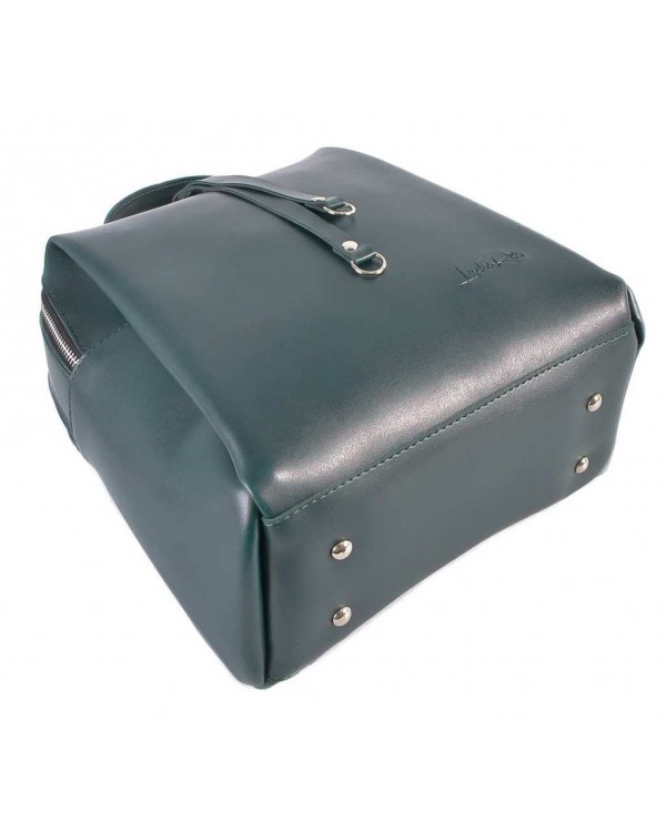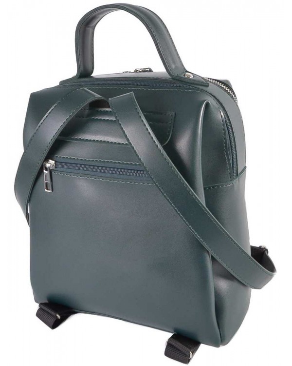Жіночий рюкзак 660 зелений. Два окремі відділення на блискавках, всередині потайна кишеня на блискавці, дві відкриті кишені. З боків відкриті кишені, на звороті рюкзака кишеня на блискавці. Розмір (см.) 26*22*12.