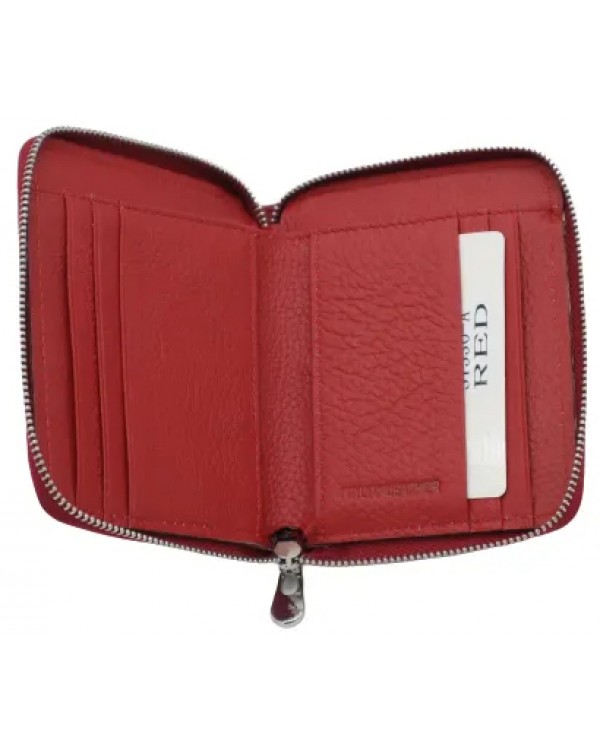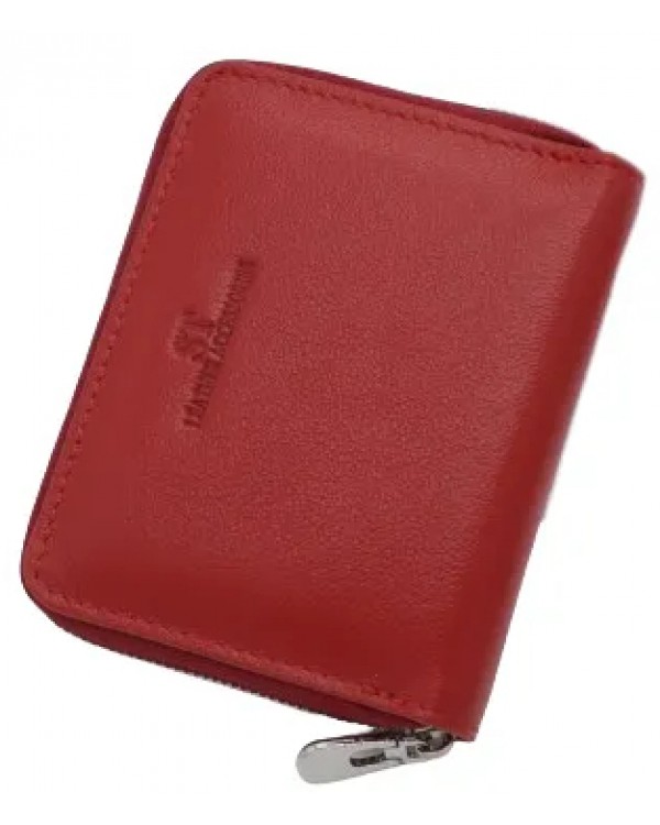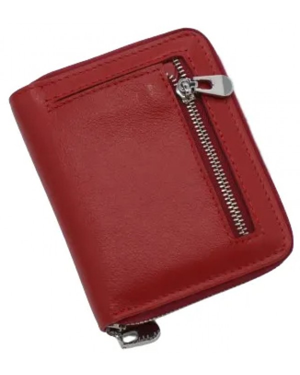 Жіночий шкіряний гаманець на блискавці ST 330-А червоний. Одне відділення для банкнот, 6 кишень для візиток, монетниця на блискавці на звороті. Розмір (см) 9*10. Поставляється у фірмовій коробці.