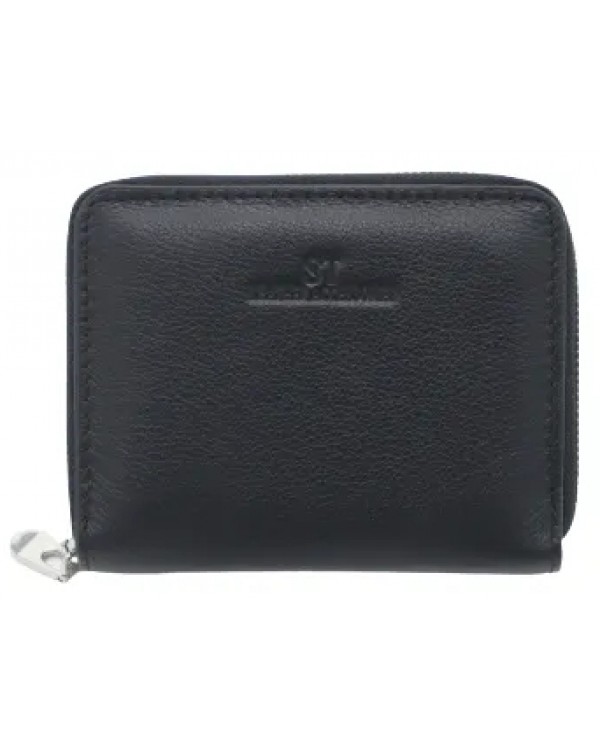 Жіночий шкіряний гаманець на блискавці ST 330-А чорний. Одне відділення для банкнот, 6 кишень для візиток, монетниця на блискавці на звороті. Розмір (см) 9*10. Поставляється у фірмовій коробці.