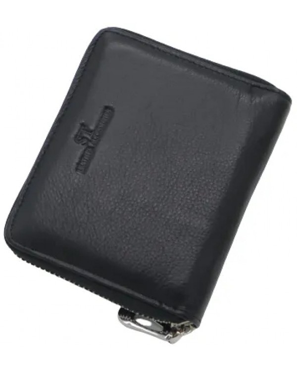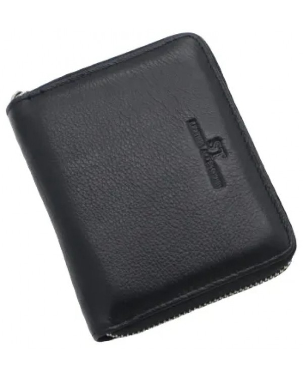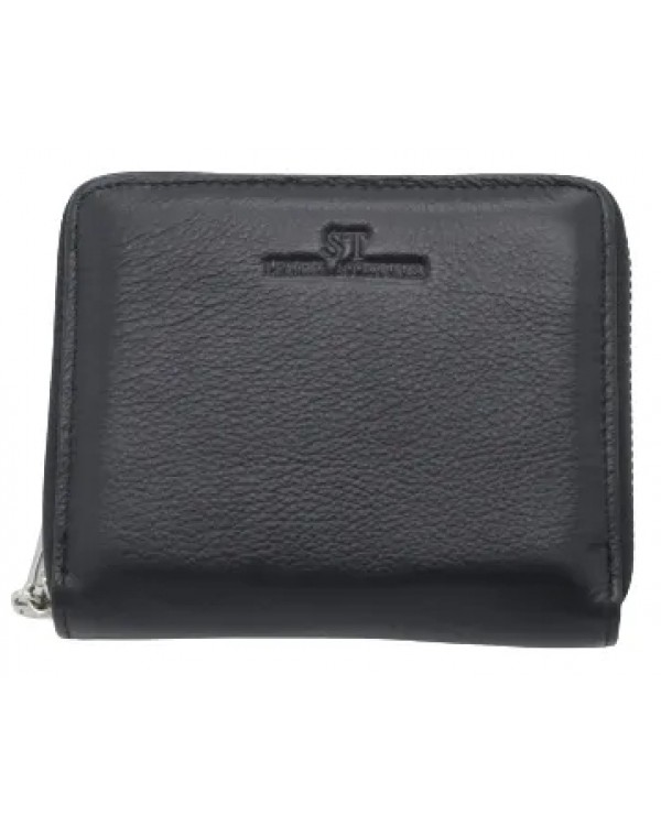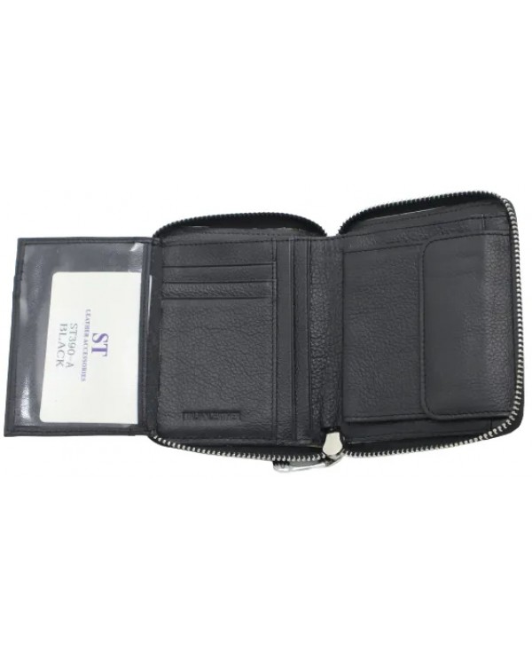 Жіночий шкіряний гаманець на блискавці ST 390-A чорний. Одне відділення для банкнот, 7 кишень для візиток (одна з яких прозора), монетниця на кнопці. Розмір (см) 9,5*11. Поставляється у фірмовій коробці.