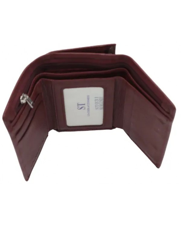 Жіночий шкіряний гаманець на магніті ST 031 бордовий. Три відділення для банкнот (одне з них на блискавці),6 кишень для візиток (одна з них прозора), монетниця на блискавці на звороті. Розмір (см) 12*8*3. Поставляється у фірмовій коробці.
