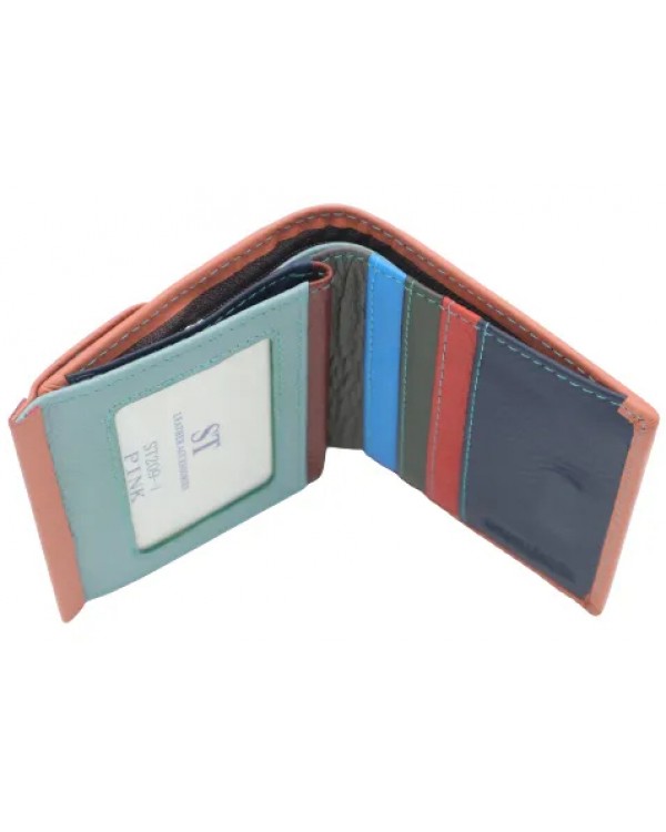 Жіночий шкіряний гаманець ST маленький. Закривається на магніт. Три відділення для банкнот (одне з них на блискавці), 4 кишені для візиток (одна прозора), на фасаді монетниця на кнопці. Розмір (см) 10,5*10. Поставляється у фірмовій коробці.