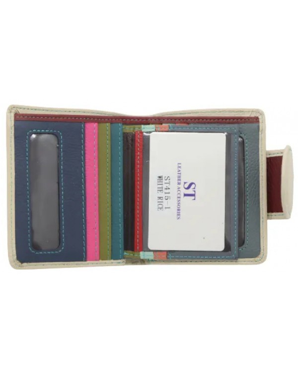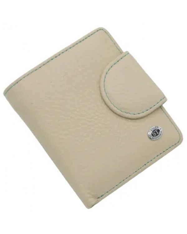 Жіночий шкіряний гаманець на магніті ST 415-1 бежевий. Три відділи для банкнот (одне з них на блискавці), 12 кишень для візиток (одна прозора), монетниця на зворотній стороні. Розмір (см.) 11*10. Поставляється в фірмовій коробці.