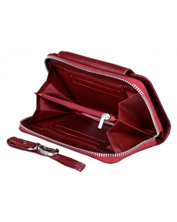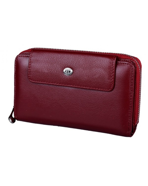 Жіночий шкіряний гаманець ST на блискавці з візитницею. Основне відділення закривається на клапан, всередині два відкриті відділення для банкнот, шість великих кишень та шість кишень для банківських карток. Відділення на блискавці складається з двох відділень, всередині дві бічні кишені, кишеня на блискавці для монет та 6 додаткових кишень для карток, у комплекті кистьовий ремінець. Розмір (см.) 17*10*3,0. Поставляється у фірмовій коробці.