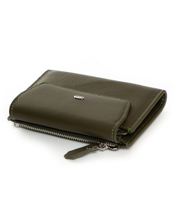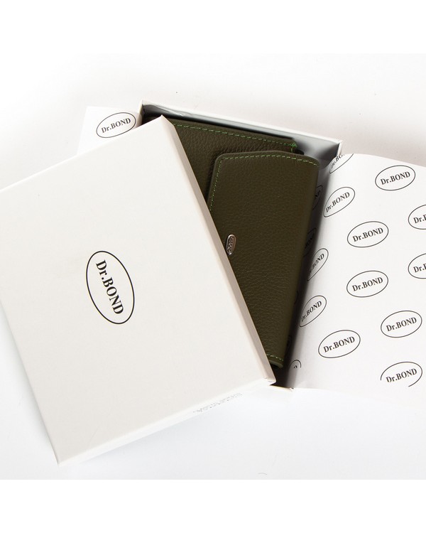 Шкіряний жіночий гаманець Dr.Bond WN-23-12 зелений. Складається вдвічі та закривається великим клапаном на прихованому магніті. Всередині одне відкрите відділення для банкнот, 7 кишень для візитних карток, 2 великі кишені та кишеня-монетниця на блискавці. Ззовні гаманець ще одна монетниця на блискавці. Розмір(см) 13,5*9,5*2,5. Поставляється у коробці.