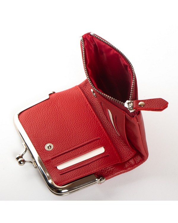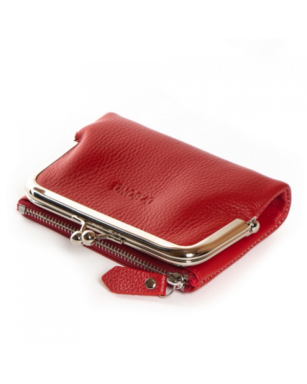 Шкіряний жіночий гаманець Dr.Bond WN-23-13 червоний. Складається вдвічі та закривається на кнопку. Всередині одне відкрите відділення для банкнот, 6 кишень для візитних карток та 2 великі кишені. Ззовні гаманця є дві монетниці, одна на клямці, а інша закривається на блискавку. Розмір(см) 12,5*9*3,0. Поставляється у коробці.