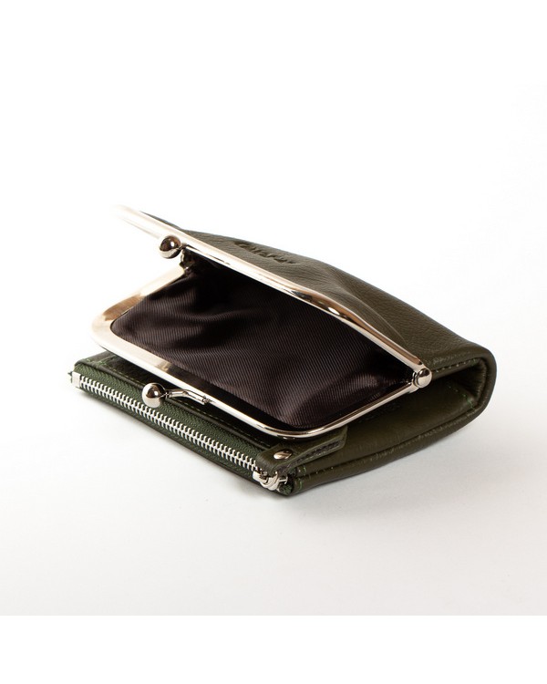 Шкіряний жіночий гаманець Dr.Bond WN-23-13 зелений. Складається вдвічі та закривається на кнопку. Всередині одне відкрите відділення для банкнот, 6 кишень для візитних карток та 2 великі кишені. Ззовні гаманця є дві монетниці, одна на клямці, а інша закривається на блискавку. Розмір(см) 12,5*9*3,0. Поставляється у коробці.