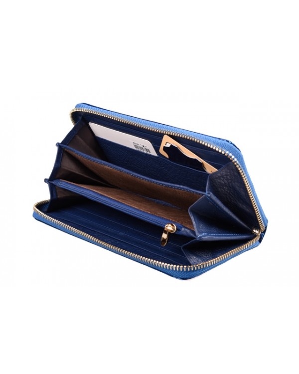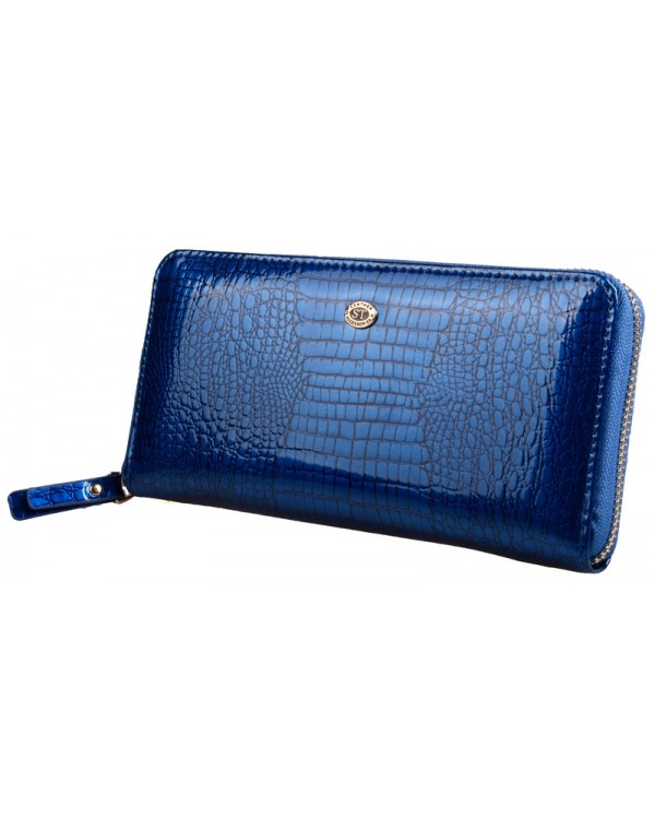 Жіночий шкіряний гаманець ST на блискавці. Усередині три відкриті відділення для банкнот, монетниця на блискавці, дві великі кишені та 8 кишень для візиток. У комплекті кистьовий ремінець. Розмір (см.) 19*9,5. Поставляється у фірмовій коробці.