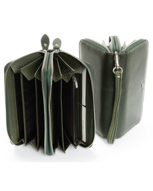Жіночий шкіряний гаманець на дві блискавки Dr. Bond W39-3 Dark-green — ваше замовлення