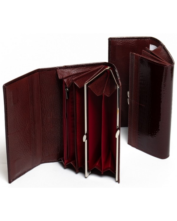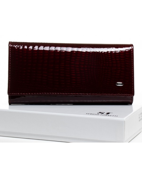 Жіночий шкіряний гаманець SERGIO TORRETTI на магнітах. Основне відділення закривається на магніти. Всередині знаходяться 3 відкритих відділення для банкнот, подвійна монетниця на застібці, кишеня-перегородка на блискавці, одна велика відкрита кишеня та 8 кишень для візитних карток. Ззовні гаманця на звороті є плоска відкрита кишеня. Розмір(см): 18,5*9,5. Поставляється у коробці.