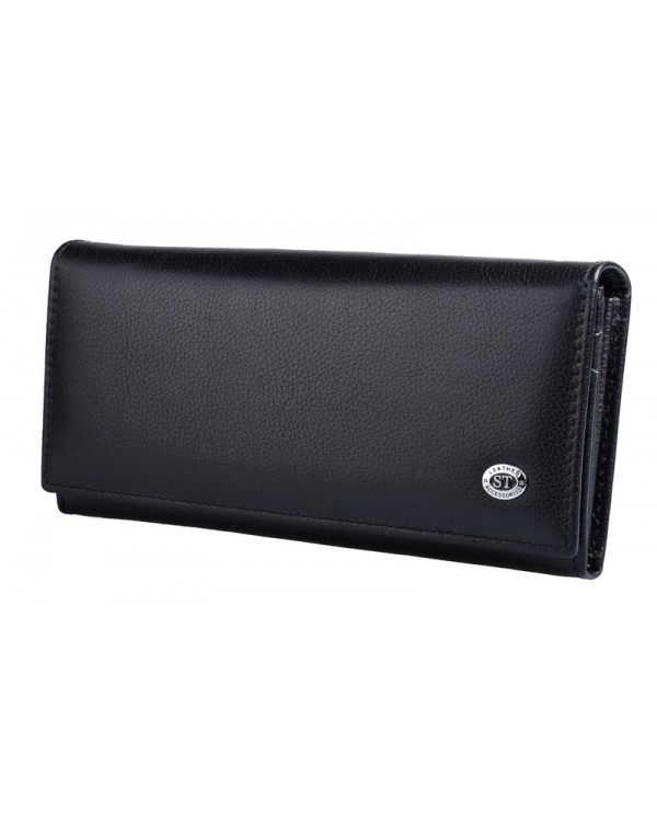 Жіночий шкіряний гаманець ST на магнітах. Всередині знаходяться 4 відділення для банкнот, дві кишені-монетниці на блискавці, велика відкрита кишеня та 8 кишень для карток та візиток. Ззовні гаманця на звороті є кишеня на блискавці. Розмір(см) 18,5*9*3. Матеріал – натуральна шкіра. Поставляється у фірмовій коробці.