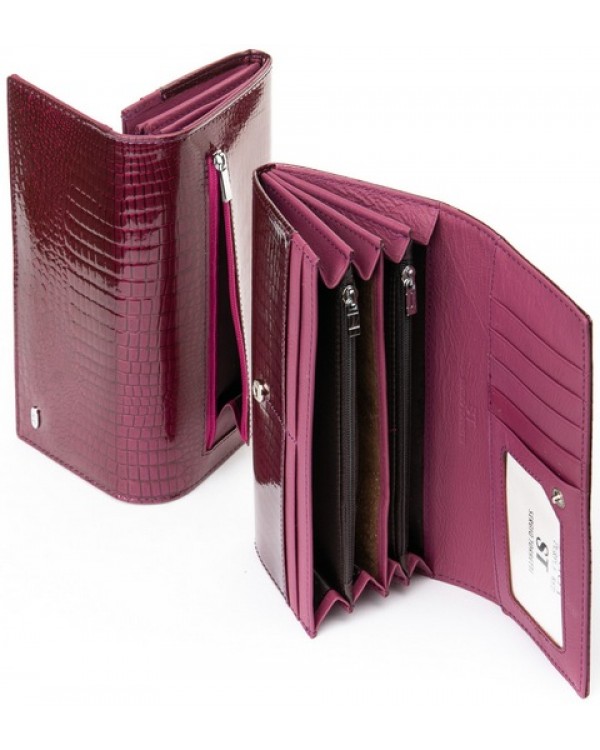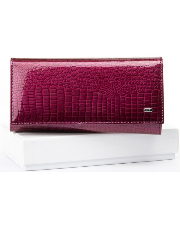 Жіночий шкіряний гаманець SERGIO TORRETTI. Зовнішня частина – лакова шкіра, внутрішня частина – натуральна м'яка шкіра. Головне відділення закривається на кнопку. Усередині знаходяться 4 відкритих відділення для банкнот, дві кишені-монетниці на блискавці, одна велика відкрита кишеня, 9 кишень для візитних карток, одна з яких прозора. Ззовні гаманця на звороті є кишеня на блискавці. Розмір (см.) 18,5*9,5. Поставляється у коробці.
