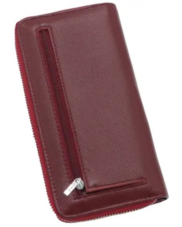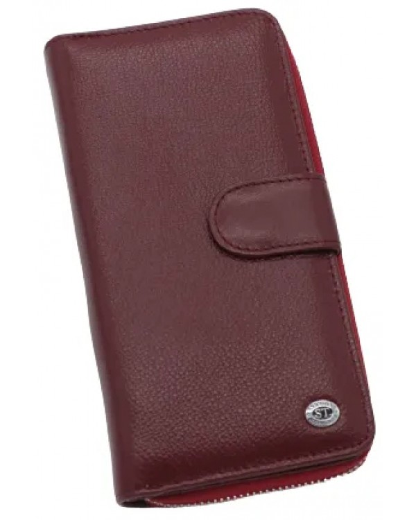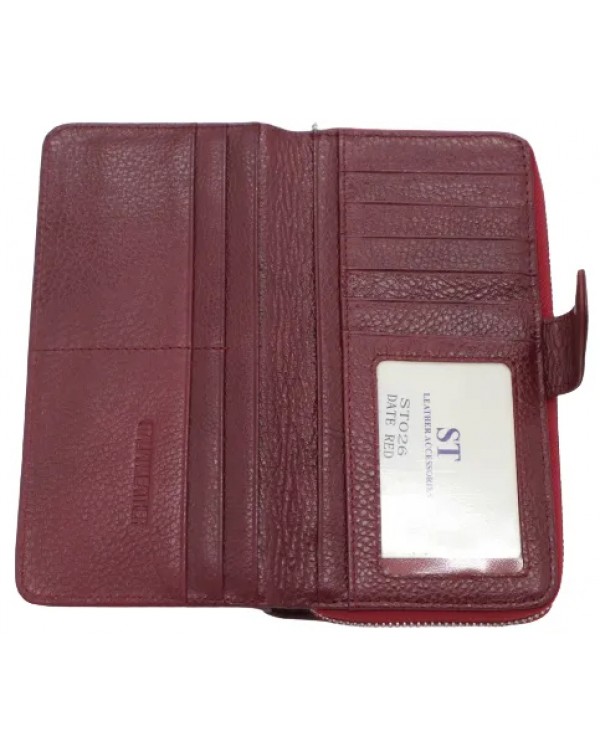 Жіночий шкіряний гаманець ST 026 бордовий. Основне відділення закривається на блискавку, всередині якого 2 відділення для банкнот, відділення для монет на блискавці, дві великі відкриті кишені, 8 кишень для карток та візиток, ззовні гаманець відділ-візитниця який закривається клапаном на магніті, в ньому є 10 кишень для карток, візиток та 3 кишені для купюр. На звороті гаманця кишеня на блискавці. Розмір(см): 19*10*3. Поставляється у коробці.