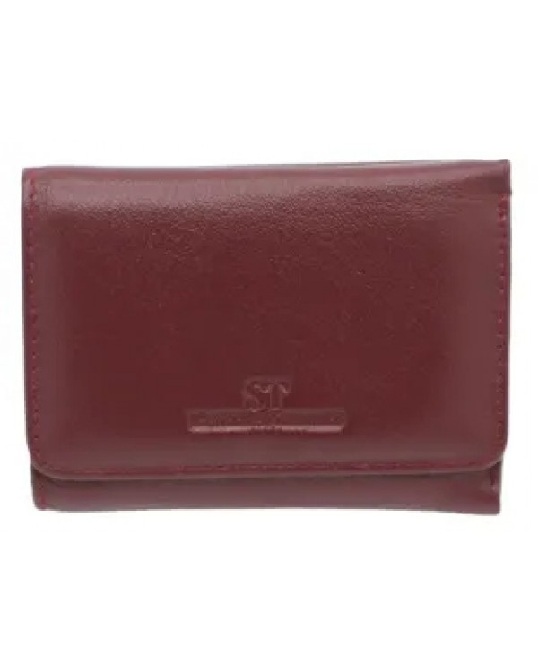Жіночий шкіряний гаманець ST 403-A бордовий. Два відділення для банкнот, 7 кишень для карток (одна прозора), монетниця на кнопці на звороті. Розмір (см.) 11,5*8,5. Поставляється у фірмовій коробці.