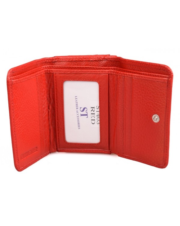 Жіночий шкіряний гаманець ST 403-A червоний. Два відділення для банкнот, 7 кишень для карток (одна прозора), монетниця на кнопці на звороті. Розмір (см.) 11,5*8,5. Поставляється у фірмовій коробці.