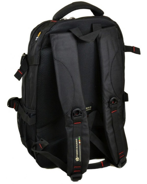 Міський рюкзак Power in Eavas 9609 Black, щільна спинка з м'якими вставками. Усередині рюкзака знаходяться два відділення на блискавці. У першому відділенні розташована кишеня-органайзер, у другому відділенні є кишеня для ноутбука та кишеня для телефону. На фасаді знаходиться кишеня на блискавці. Ззовні на бокових сторонах рюкзака кишені-сітки для пляшок води об'ємом 0,5 літра. Плечові лямки регулюються по довжині. Розмір (см.): 44*31*18